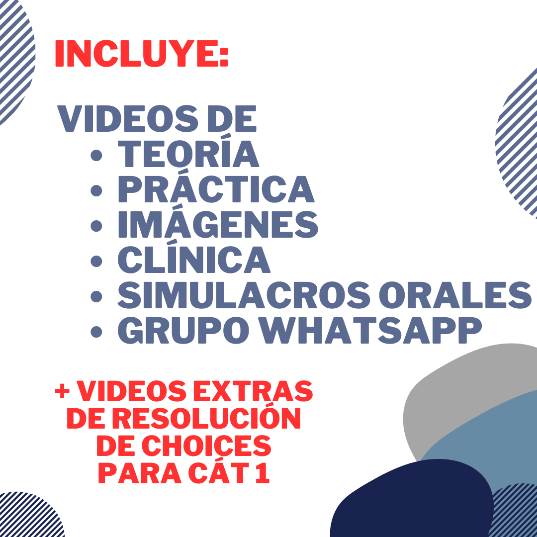 ►SIMULACROS ORALES: 100 videos de 5 min cada. No son videoclases, son simulacros del parcial donde nosotros exponemos algunos temas oralmente para que puedas seguir el modelo con los demás temas. En los videos veremos cómo exponer temas como por ejemplo: generalidades, huesos, articulaciones, biomecánica articular, arterias y venas, linfáticos, nervios, plexos nerviosos, músculos, espacios topográficos, órganos, relaciones, irrigación y venoso en general, linfáticos en general, vías, sentidos, pares craneales, sistema ventricular, LCR, meninges, entre otros.